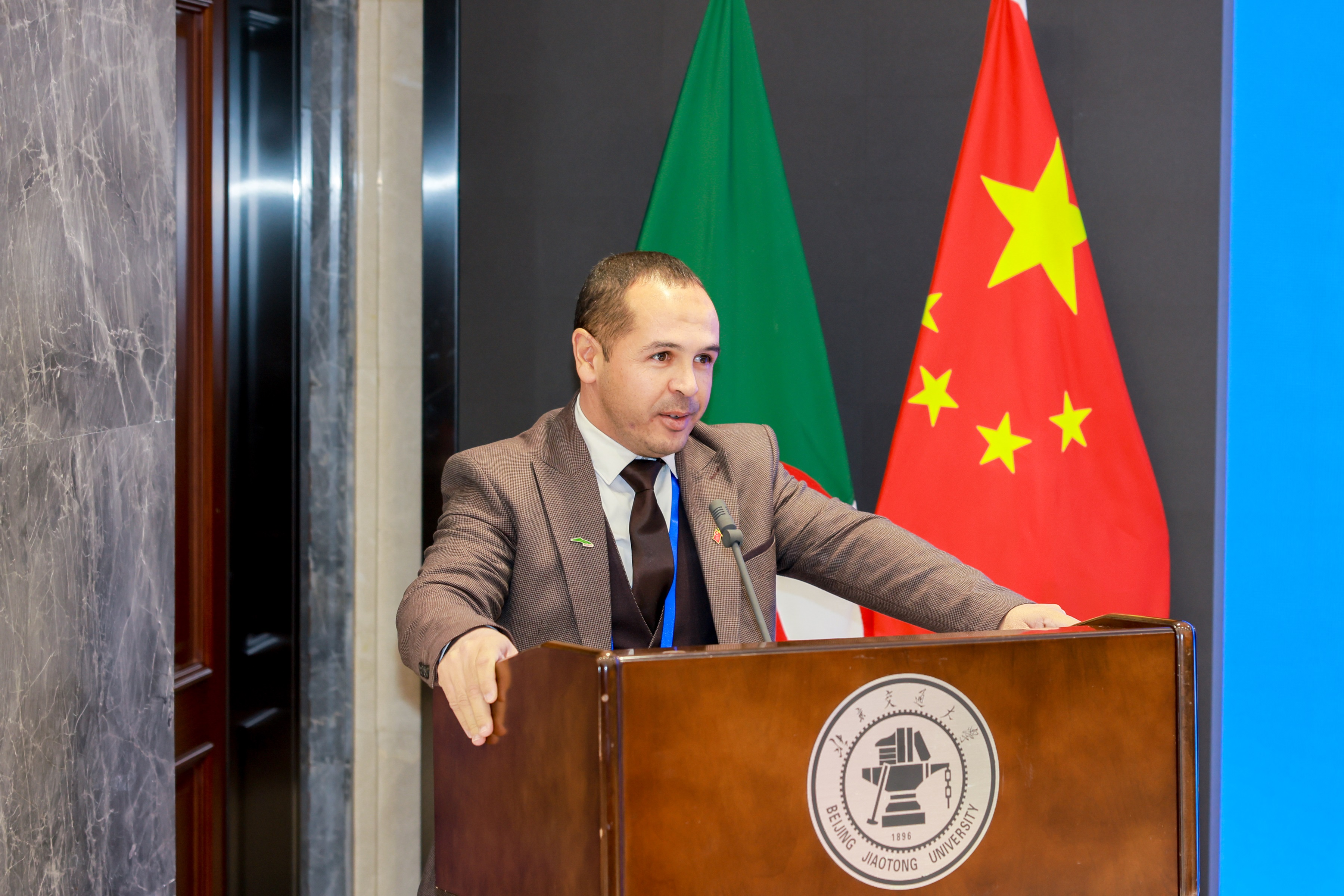 阿尔及利亚铁路局Tlemcen-Akkid Abbes项目副经理阿布多·扎马尔先生代表阿方学员发言。他对中国铁建与北京交通大学提供此次为期一个月的培训表示由衷感谢。他特别提到,北京交通大学的授课老师们教学得法、专业扎实、讲解透彻,为他们专业成长提供了有力支持,并为他们在阿尔及利亚铁路局(ANESRIF)的工作注入新动力。他期待各方未来能进一步深化合作、拓展交流,推动更多务实成果落地。